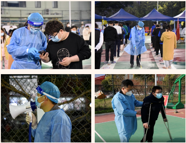 在這個集宿區(qū)內(nèi),有一群人奮戰(zhàn)在抗疫最前線。“大白”和“小藍(lán)”是他們最矚目的“通行證”、“工作證”,他們身份多樣,上演著超級“變、變、變”,他們既是細(xì)致入微的醫(yī)生助手,也是發(fā)放物資的大力水手,還是現(xiàn)場保障的行家里手。