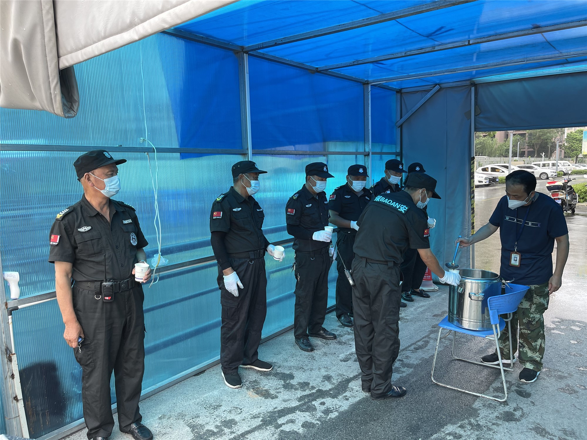 驕陽下,公司員工、安保人員及志愿者持續(xù)奮戰(zhàn)在疫情防控一線,測溫、驗碼、排查過往人員、車輛,全力做好疫情防控工作。雖然已是立秋天氣,室外仍然會覺得酷熱難擋,工作人員和志愿者一個個都熱得汗流浹背。 “綠豆湯熬得很濃稠,味道也不錯?!焙戎@份充滿愛意的“清涼湯”,值守人員贊不絕口,稱贊的不僅僅是味道,更是助力戰(zhàn)“疫”的責(zé)任感和愛心。 撰稿:李佃左、張藝馨、攝像:李佃左