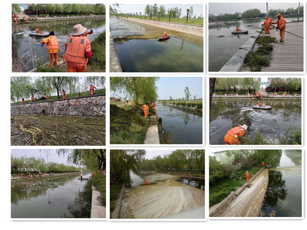 加強河道水草清理力度,提升河道水環(huán)境、保河道暢通。4月初,河道水草大量繁殖,園區(qū)利民河、蔡莊大溝等河道滋生了大量水草,給河道保潔帶來極大難度,為了盡快完成河道水草打撈工作,公司組建了河道清撈隊,每天安排20名環(huán)衛(wèi)工人對河道進行集中打撈,尤其是針對蔡莊大溝水淺、駁岸高、工作量大等情況,積極探索、創(chuàng)新工作方法,采用了“機械先行,人工輔助”的作業(yè)模式,作業(yè)效率大幅度提升,預(yù)計4月25日前全面完成河道水草打撈,重現(xiàn)園區(qū)“碧波潺潺、河暢水美”的河道景觀。