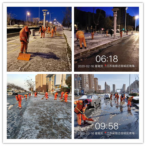 2月15日,宿遷市普降中雪,加上氣溫驟降,道路積雪結(jié)冰較為嚴(yán)重,給新冠病毒疫情防控帶來了諸多不便。為第一時(shí)間清除冰雪,恢復(fù)道路通行,園區(qū)城管局、建發(fā)公司提前部署、以雪為令,要求環(huán)衛(wèi)作業(yè)單位在做好疫情防控的同時(shí),全力開展掃雪除冰工作,力保雪后道路暢通。