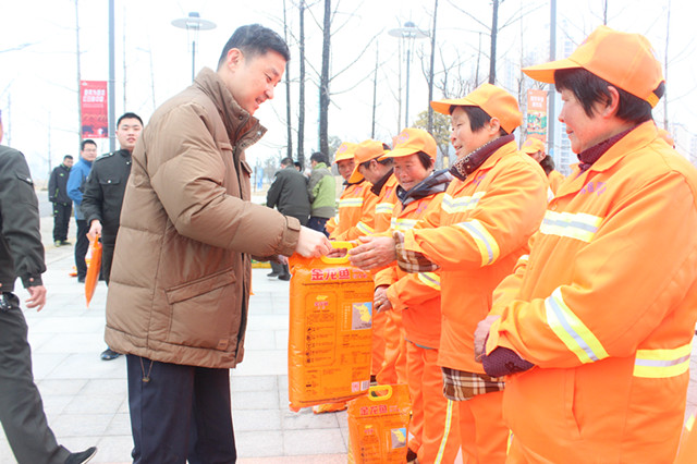 118上午,園區(qū)黨工委委員、管委會(huì)副主任、規(guī)劃建設(shè)局局長(zhǎng)許紹杰帶隊(duì)慰問(wèn)了奮戰(zhàn)在一線的城市維護(hù)作業(yè)人員,向他們送上了春節(jié)的問(wèn)候。