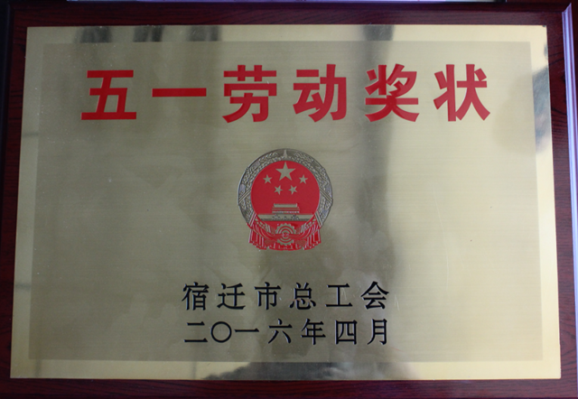 4月29日,在宿遷市慶祝五一國際勞動節(jié)暨表彰五一勞動獎大會上,公司被授予宿遷市“五一勞動獎狀”榮譽稱號。